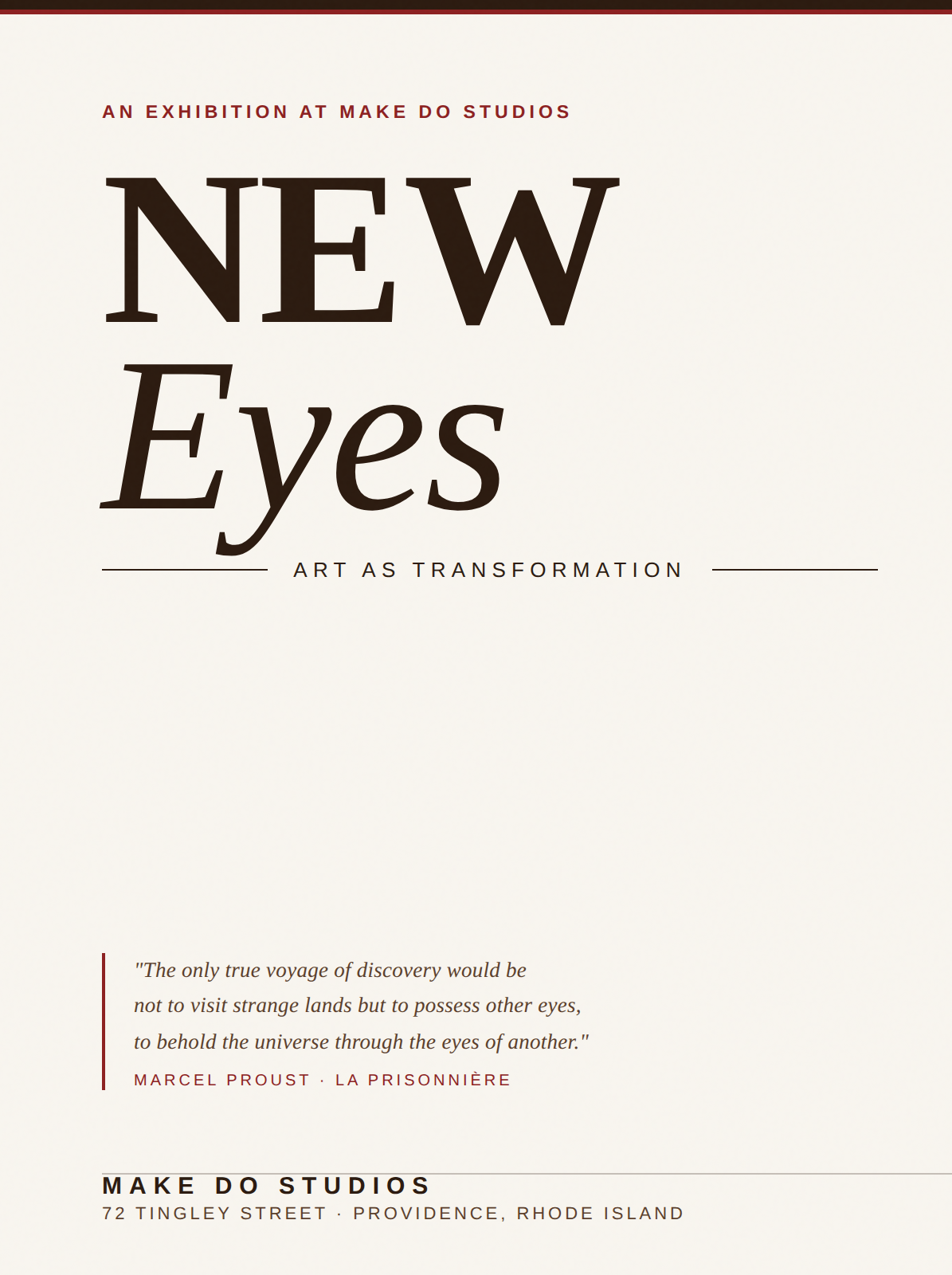 Curated by Propel Gallery, this exhibition brings together four artists whose work transforms how we perceive the world. Grounded in Marcel Proust's meditation on the nature of discovery, the show asks what becomes possible when we learn to see differently.
