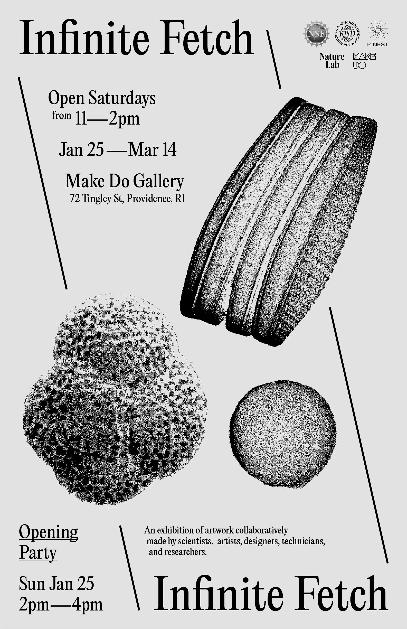 The Infinite Fetch exhibition features artwork which transforms the research of participants on the NBP24-10, a research cruise which travelled through the Southern Ocean and parts of Antarctica in Fall 2024, and participants of the Vis-a-thon 2025 program at the Rhode Island School of Design. This art was made collaboratively by scientists, artists, designers, technicians, and researchers.